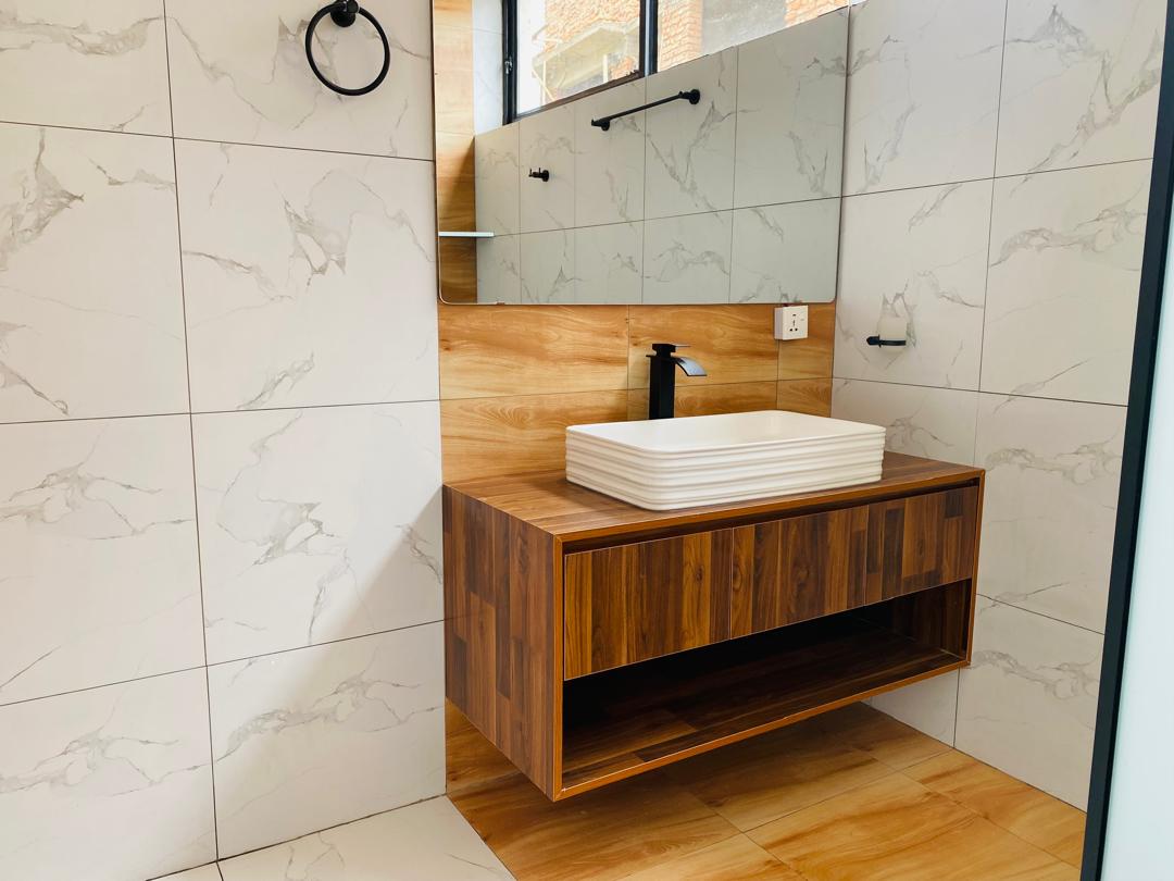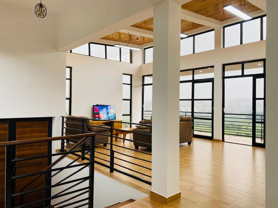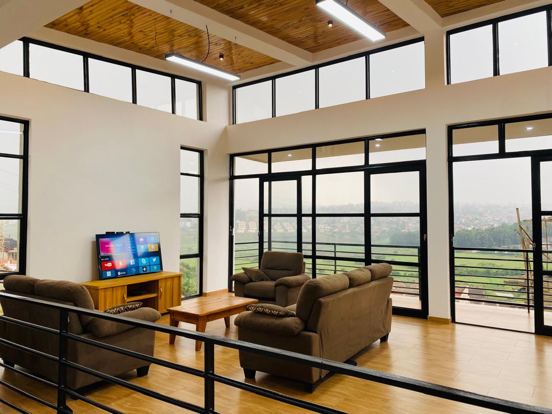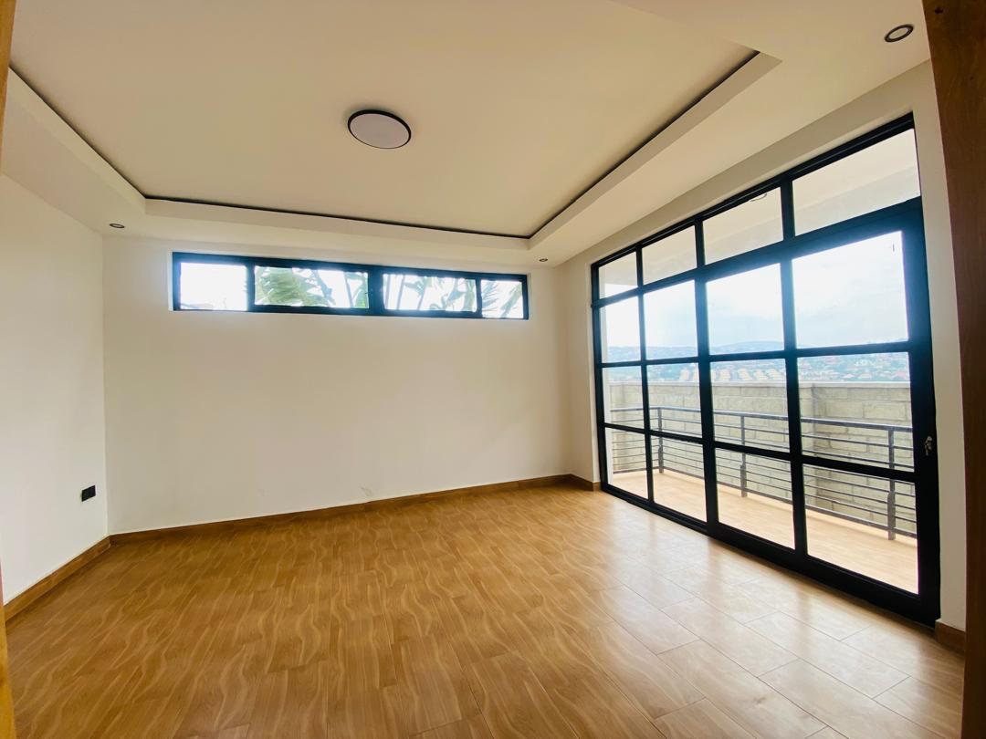 It is a 4 bedrooms with 3 bathrooms. Living room with high ceiling and natural light, open to the fantastic Kicukiro/Niboye view.
